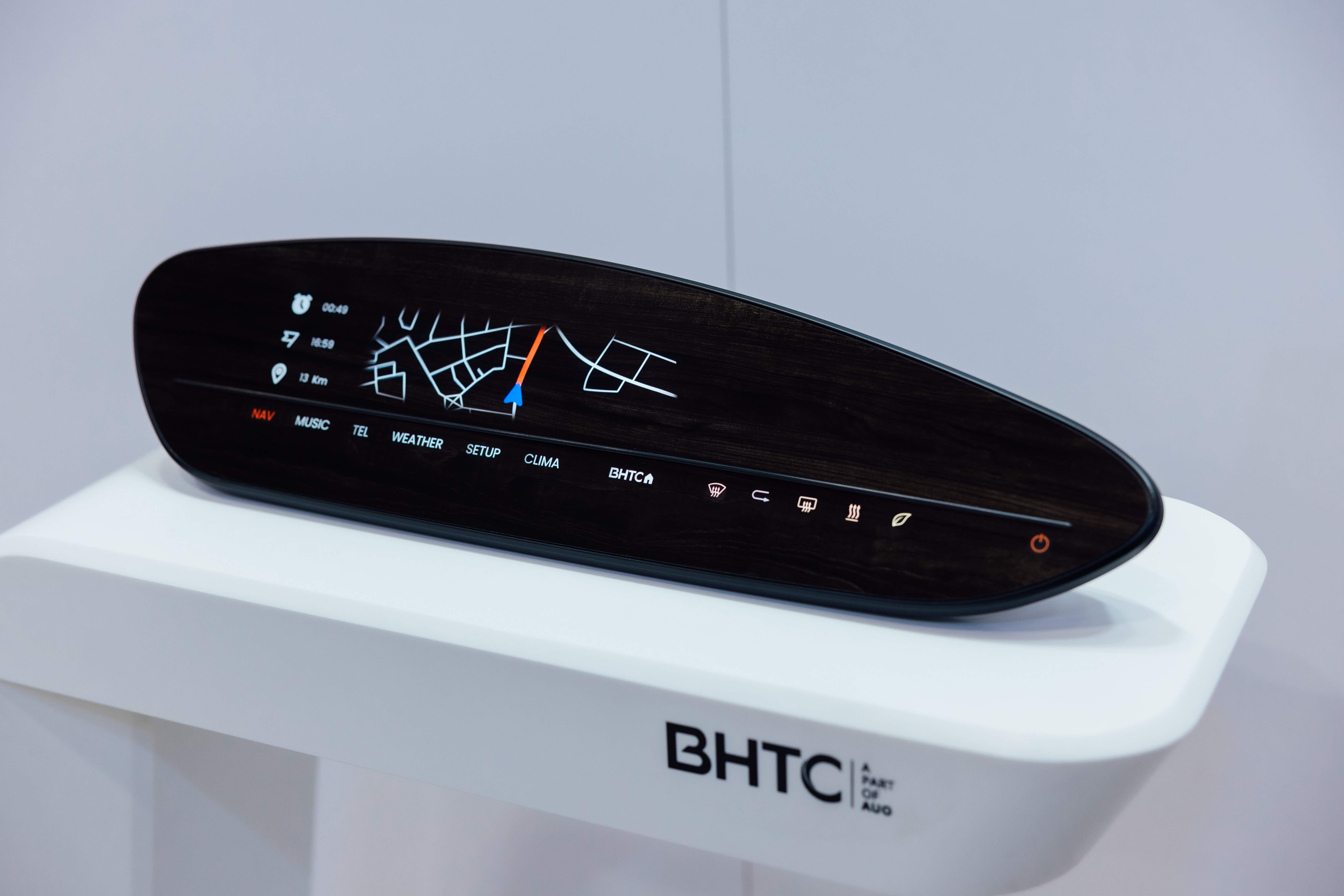 BHTC的木紋車用顯示器(Display Behind Wood)將無縫木質表面與顯示器結合后,可以融入車內設計中,提供駕駛優質的視覺效果,加上其無邊框的設計和亮度調控,創造更優質的車內體驗。