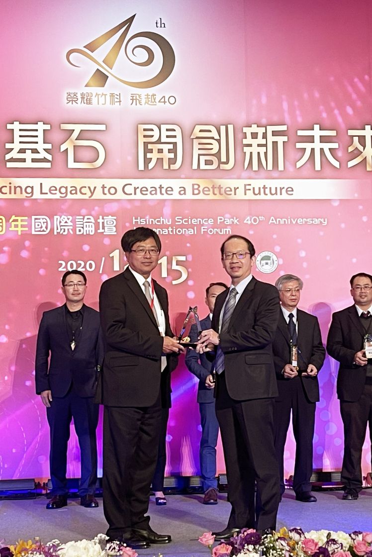 友達榮獲「2020 年竹科優(yōu)良廠商創(chuàng)新產(chǎn)品獎」,由友達技術(shù)長廖唯倫 (右) 代表領(lǐng)獎 |